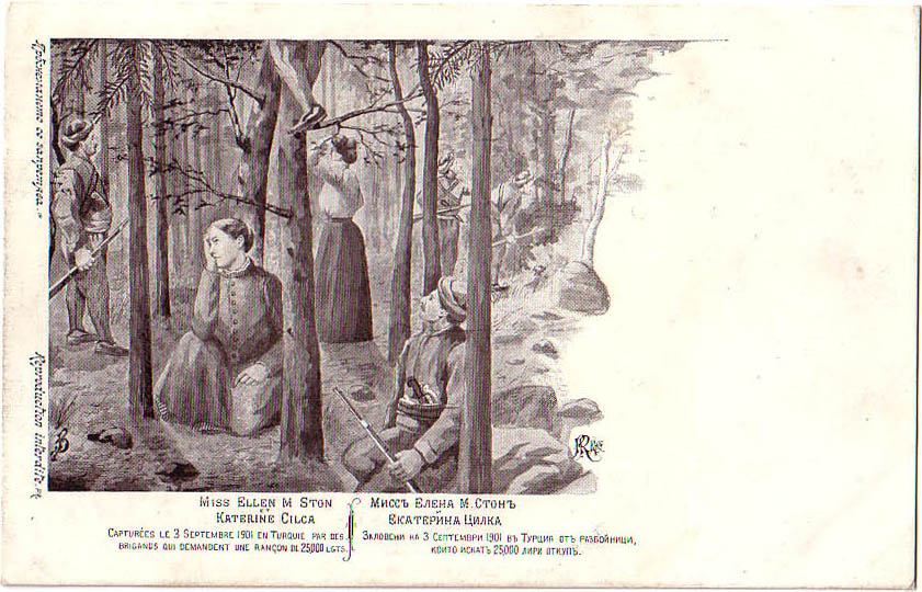 As a result, in 1901, the Central Committee was forced to look at other means and sources to liberate Macedonia, independent of Bulgaria. A system of small robberies in the past hurt IMRO’s reputation so, they decided to kidnap a foreign Protestant missionary believing that the Turkish government would be forced to pay a ransom quickly in order to avoid international complications. On September 3, 1901, an American, Miss Ellen Stone was seized and a ransom of 25,000 lira ($100, 000) was the demand. The Miss Stone Affair became America’s first modern hostage crisis.