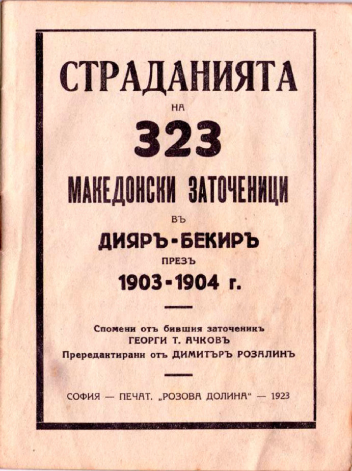 Rosalina, D. (1923). Георги Ачковъ – Страданията на 323 македонски заточеници въ Дияръ-Бекиръ презъ 1903-1904 г. Книги за Македония. The Golgatha (sufferings) of 323 Macedonian exiles in Diyar-Bekir in 1903-1904 https://macedonia.kroraina.com/uchastnici/achkov_1923.htm