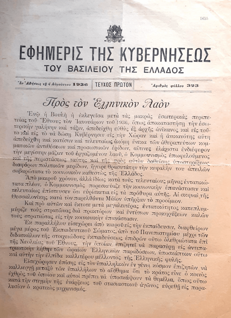 The above proclamation effectively sets the ideological justification for the establishment of Ioannis Metaxas’ authoritarian regime. It accuses communism of destabilizing Greek society and infiltrating education and public services — themes that were commonly used to suppress not only leftist elements but also ethnic minorities, including Macedonians, through censorship, surveillance, educational reform, and forced Hellenization.