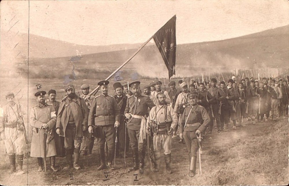 RHM Burgas. (n.d.). Macedonian-Adrianopolitan Volunteer Corps during the Balkan War [Photograph]. Burgasmuseums.bg. https://www.burgasmuseums.bg/en/encdetail/macedonianadrianopolitan-volunteer-corps-119