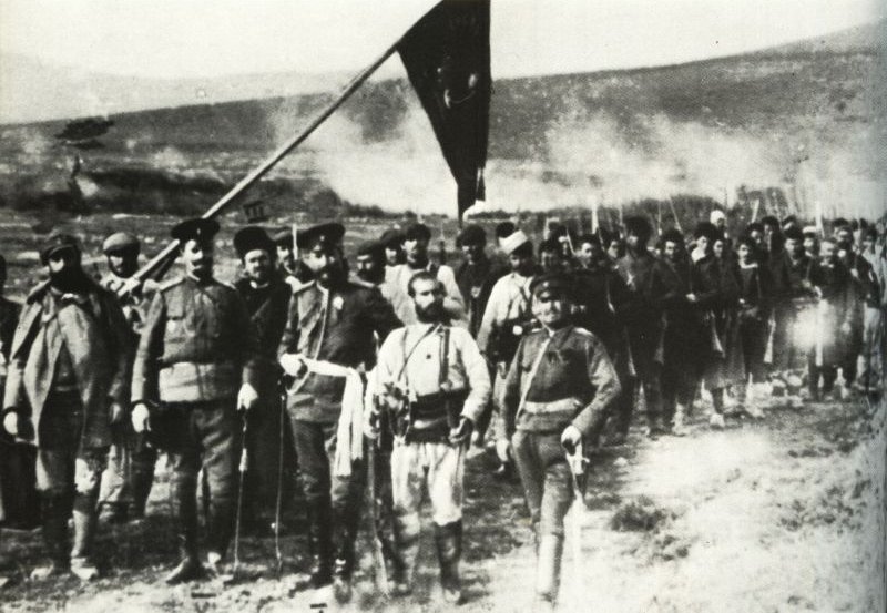 Melas, S. (1913). Macedonian Voivoida Yane Sandanski Macedonian force with a part of the Bulgarian Army in 1913 “going down” to Drama [Photograph]. Pluton22.blogspot.com. https://sklithro-zelenic.com/wp-content/uploads/2022/02/c0a7e-sandanski2.jpg