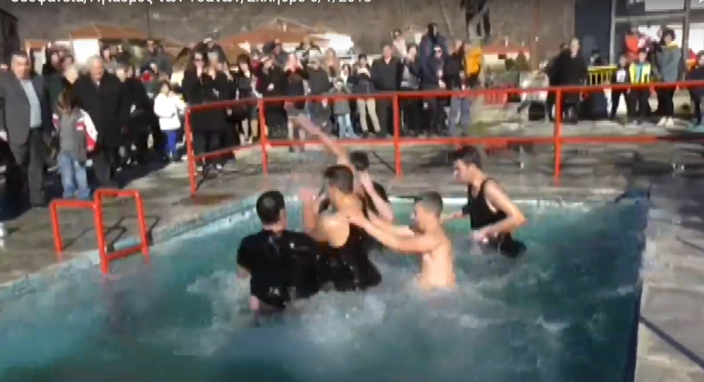 On January 6th, after the morning service, the priest would walk to the pool followed by the whole village, all the while, singing and chanting in the orthodox tradition. At the pool, a number of volunteer single men would encircle the pool waiting to dive into the water and retrieve the cross. A short ritual service would take place and at the end of the ritual, the priest would toss the cross into the pool. The young single men would dive into the pool and the one who happened to capture the cross first would have good luck bestowed onto him for the whole year.