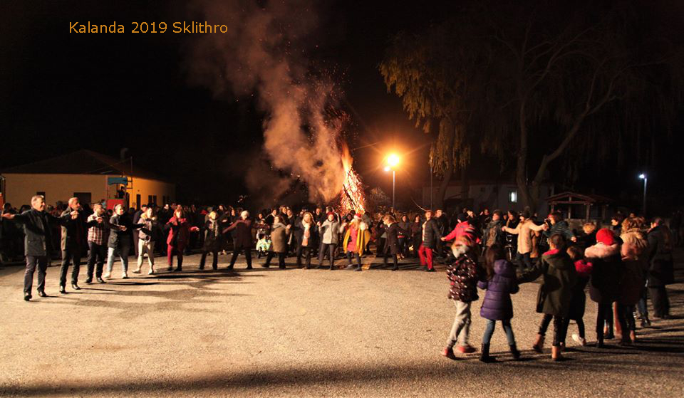 The Macedonian tradition of KOLEDA in the village and the region of Florina. Every year, on the night of December 23rd, the Macedonians in Sklithro and all across the region gather in the centre of their villages and towns, lighting a giant bonfire to anticipate the birth of Christ. If one were to capture a satellite image of Greece during the night of Dec. 23rd, they would be able to spot all the places inhabited by Macedonians by looking at the bright lights of the bonfires, as this tradition is not celebrated by anyone else in the country.