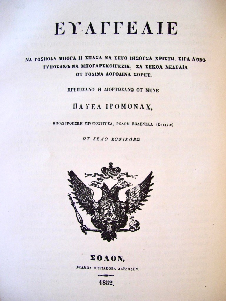 Мико. (1832). Konikovo Gospel, page 1. – A Bilingual Vernacular Gospel Manuscript from Macedonia (Late 18th – 19th Century)Wikipedia. https://en.m.wikipedia.org/wiki/File:KonikovoGospel.jpg